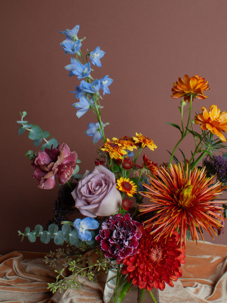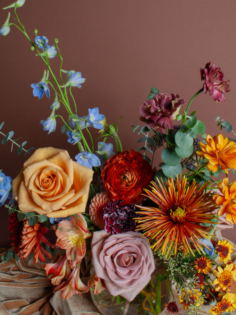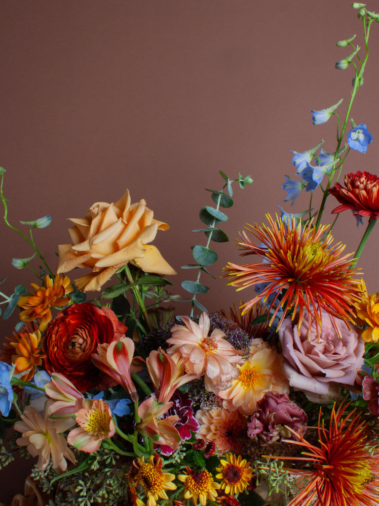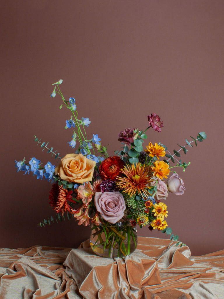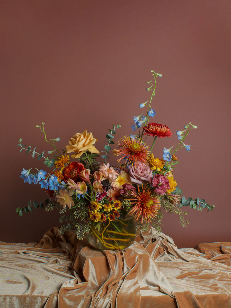 A collection of our wrapped bouquets and arrangements designed in a vase.