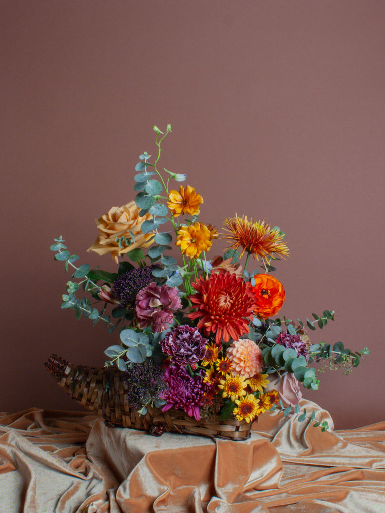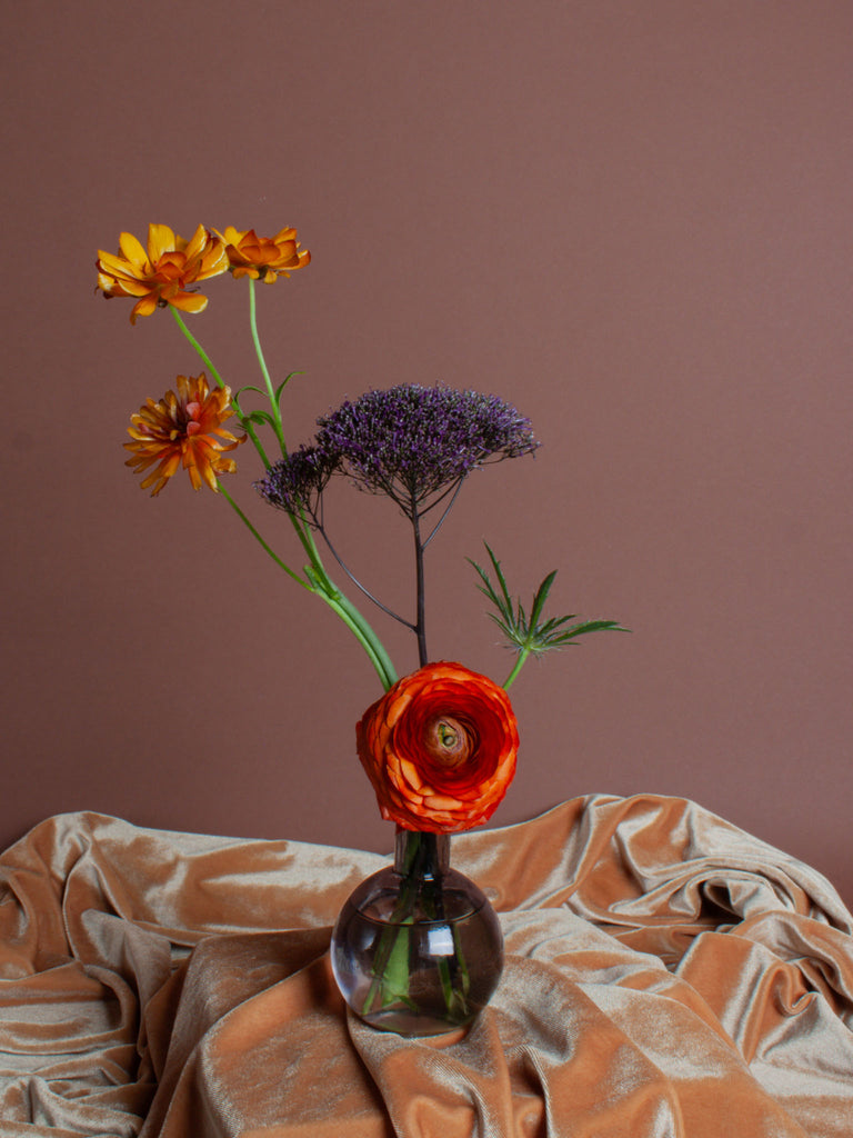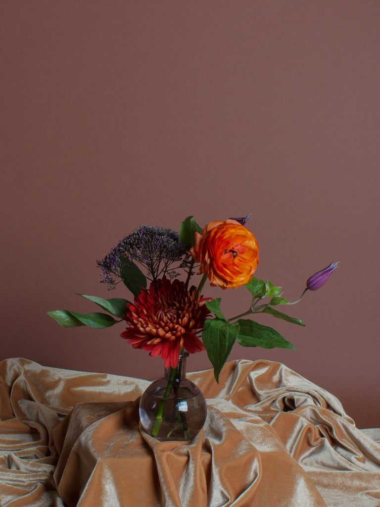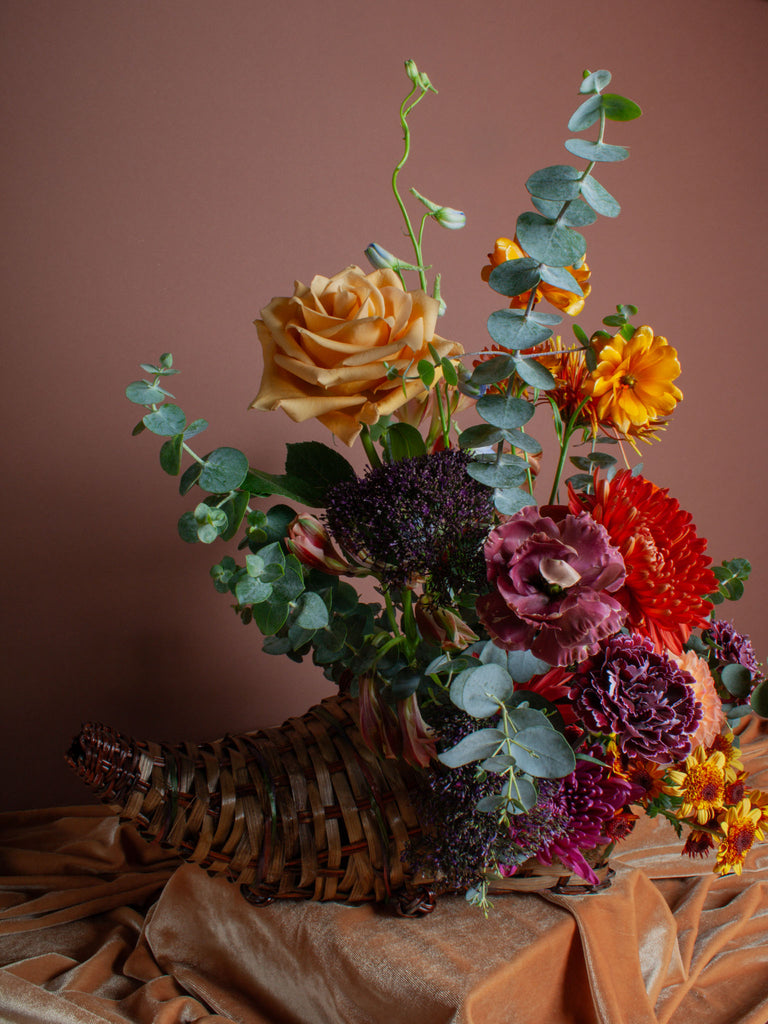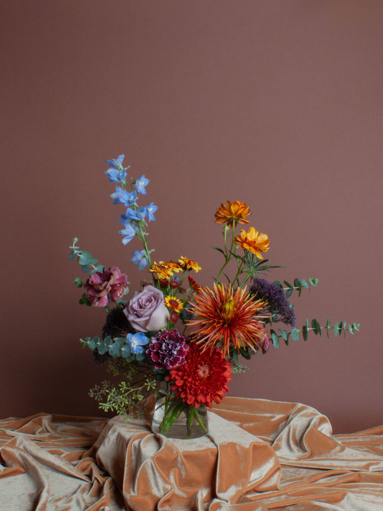 A collection of our wrapped bouquets and arrangements designed in a vase.