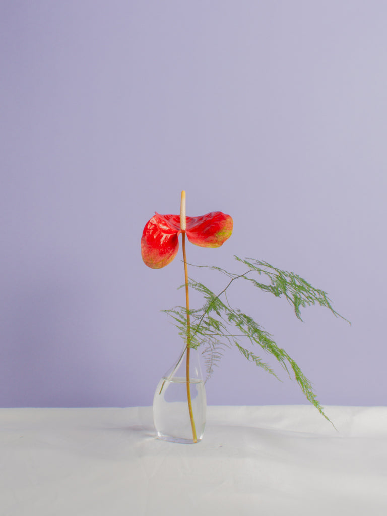The arrangement comes in a slim glass vase. Brave Floral is a floral foam-free shop, designing all of our arrangements in water.