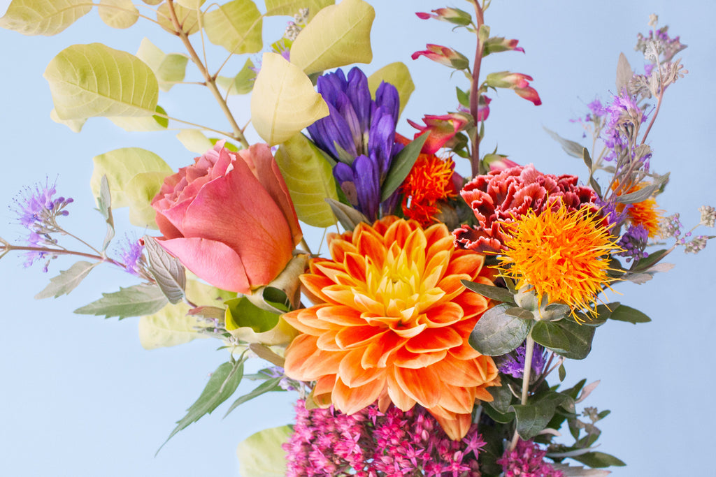 HOW IT WORKS: Add this bundle to your cart and select the first day you'd like the first bouquet delivered* or ready for pickup. Include a message for your recipient to receive with the first delivery order. The first delivery order will be designed in an included vessel which can be kept and reused for all future monthly wrapped bouquets. Every month, recipients receive a curated selection of fresh blooms in our Seasonal Market Bunch size and a card that includes the details of that month's seasonal flowers.
