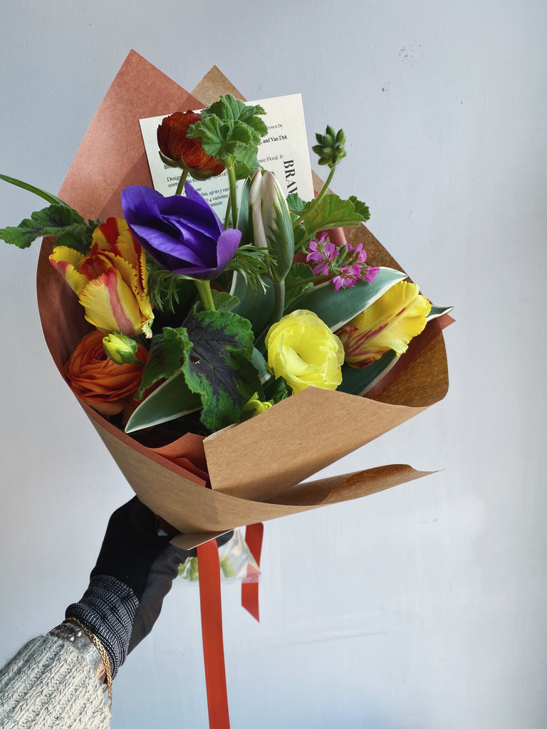 Your florals have already been designed and arranged either in a vase, or as a hand-tied bouquet, for you by one of our designers.
