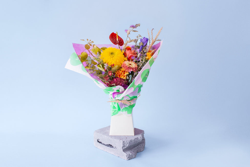 Bouquets are “designer’s choice” and no custom or color or flower requests will be taken at this time. Photo dictates the overall aesthetic and style of the bouquet, and will vary in exact color and materials as our floral inventory rotates weekly and with the season.