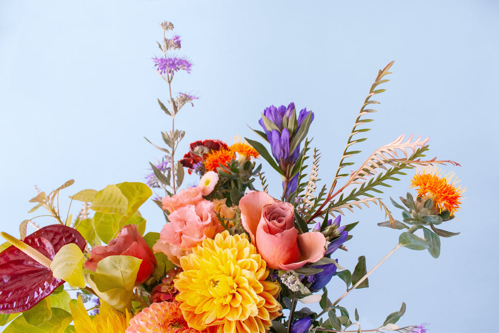 Our bouquets are hand-tied and designed with the utmost care and caution using blooms & foliage sourced from local farms (all within 99 miles of Maplewood**).