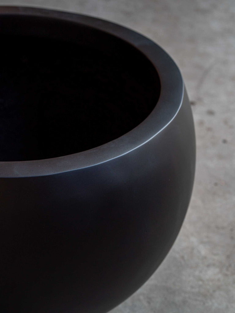 Made from lightweight fiberglass with a matte painted finish, the geometry of the Calyer exhibits a modern take on a classic planter bowl shape and will soften the hard angles often found indoors. This vessel's low orb design is a beautiful counterbalance to plants with leafy, broad foliage. Includes a removable drainage plug.