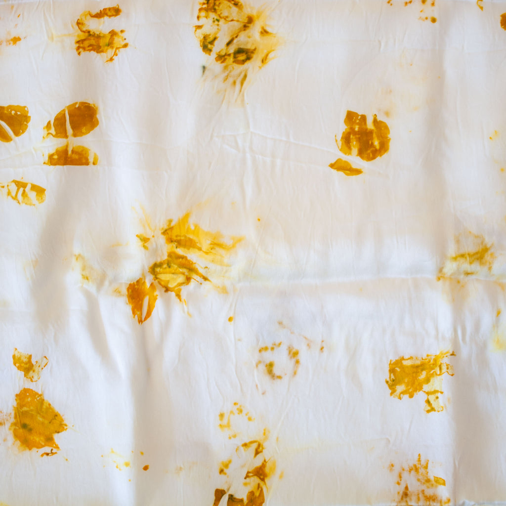 King size silk pillow case, perfect for smooth skin and hair. Botanically dyed natural fibers pressed with flowers grown in Audrey's backyard.