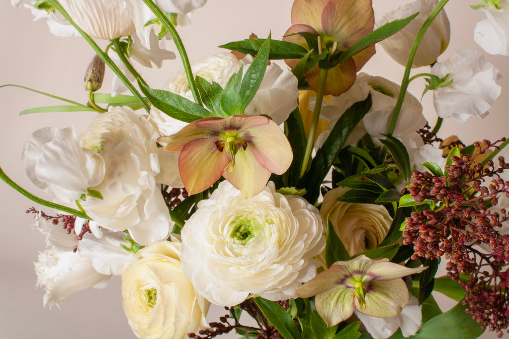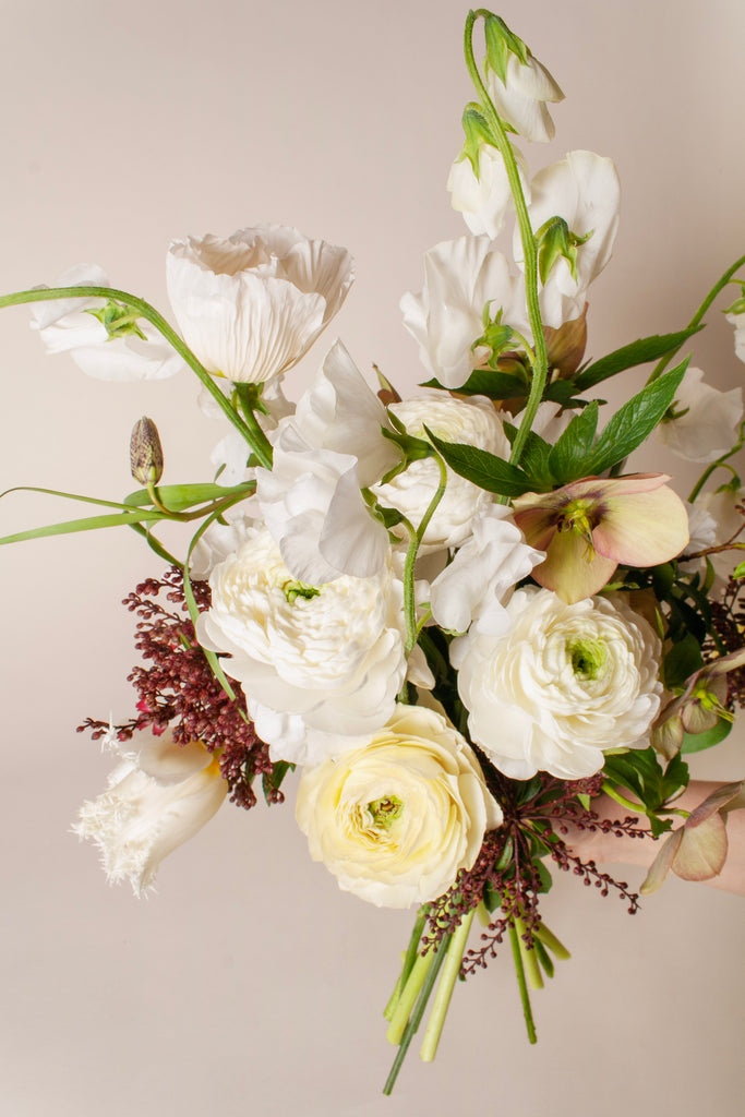 Aromatic greens and whites take you to the open air fields of the French countrysides. Designed with a mix of delicate blooms, wild grasses amd herbs. It's both unfussy and sophisticated, casual yet refined.