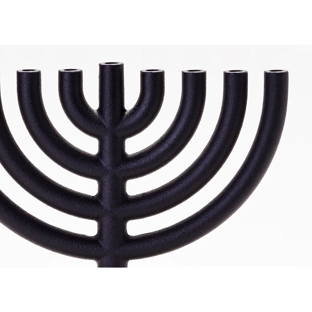 A solid cast iron Menorah that is both simple and ceremonial. Designed as one piece with a seamlessly integrated tray to catch wax drippings that doubles as a repository for used matches. A classic design, Menorah is included in the permanent collection of The National Museum of American Jewish History.