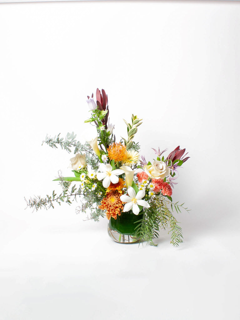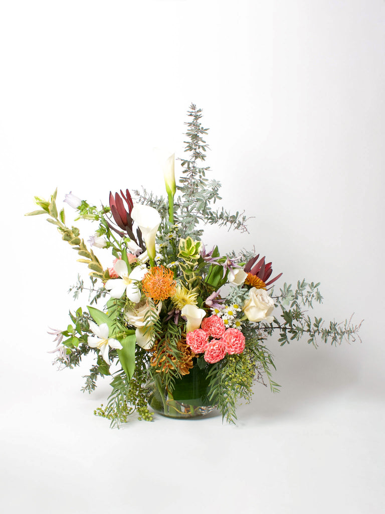 Your florals have already been designed and arranged either in a vase, or as a hand-tied bouquet, for you by one of our designers.